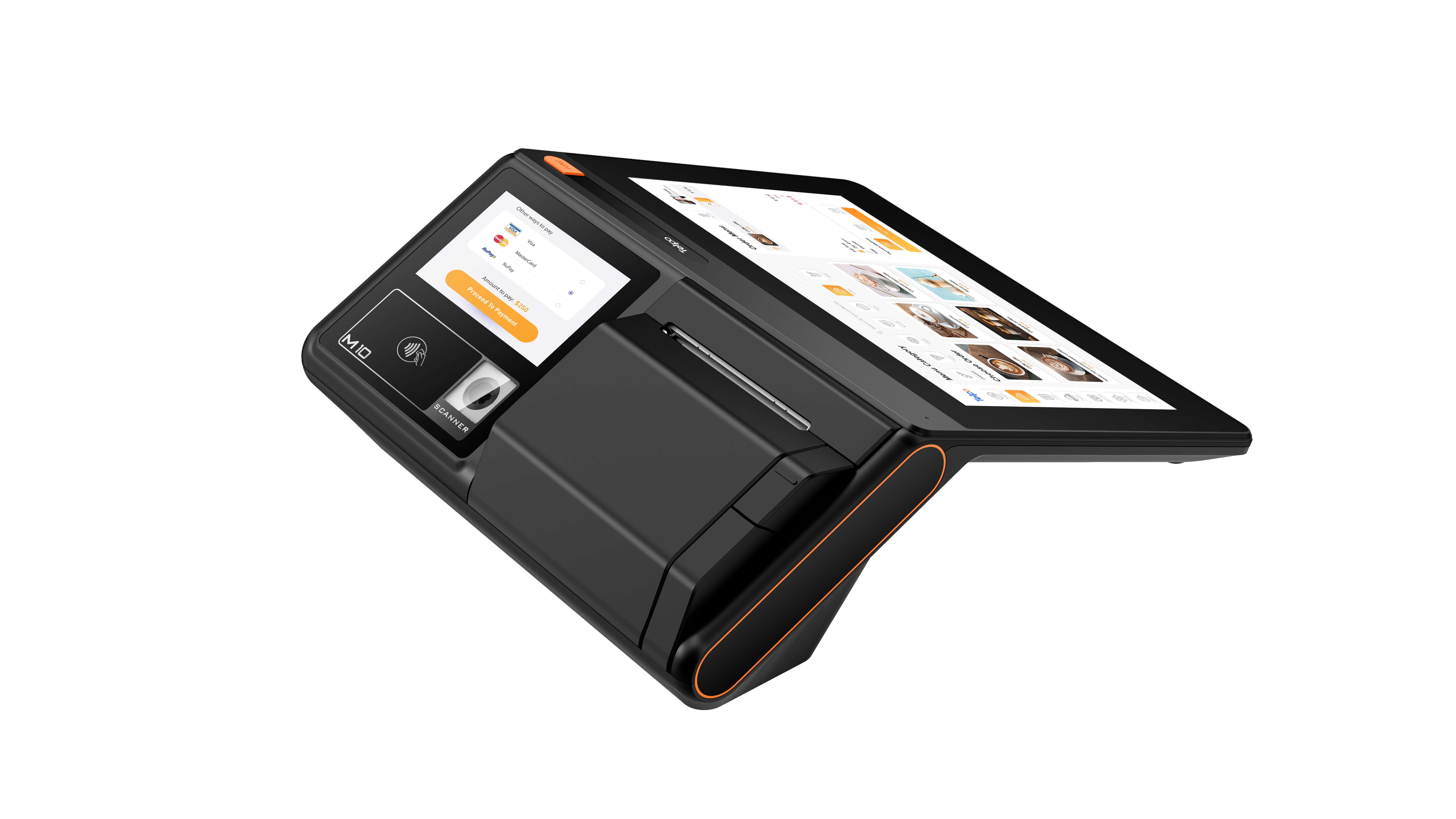 Main Display: 10", 1280*800 ⅚ 1" 1920*1200 Customer Display: 4", 800*480